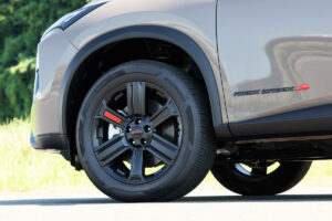 タフギアの印象を存分なく発揮するロッククリークには溶岩をイメージしたラバレッドのアクセントカラーがフロントグリルやバンパー、アルミホイール、シート、インパネ、ステアリングホイールなどに配されている。防水シートが標準化されているのも嬉しい。475万6400〜488万6200円。