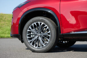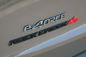 NISMOはコーナリング限界の高さ、伸びのある加速、フラットで質感の高い乗り味がウリ。カヤバ製スイングバルブがダンパーに用いられている。また、e-4ORCEは後輪の駆動力配分が増やされ、高いライントレース性を実現。足元には20インチのミシュラン製パイロットスポーツEVが与えられ、サスペンションとパワステにも専用チューンが施されている。