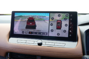 アラウンドビューモニターには自車の周りが360度確認できる3Dビューと、フロントノーズで隠れた路面を擬似的に確認できるインビジブルフードビューを日産国内初設定。
