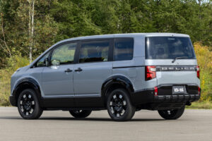 約6年ぶりとなる今回のマイナーチェンジではラジエターグリルや前後バンパーが変更され、リアではDELICAのロゴが外板パネルからガーニッシュ内に移されてプレミアム感を演出。また、ホイールアーチモールの採用によって力強さとリフトアップ感が強まり、18インチアルミホイールのデザインが刷新されるのも見逃せない。