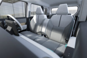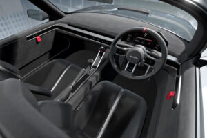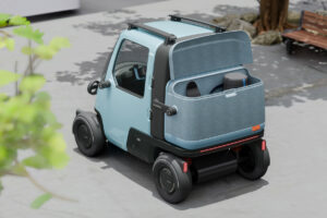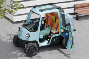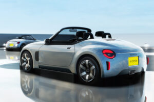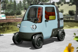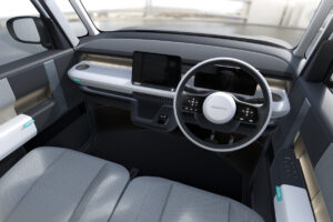 事前に存在が公表されたミゼットXは自転車以上・軽自動車未満の新モビリティBEVで、1+2のシート配列がユニークだ。ボディ寸法は2200mm×1295mm×1680mm。使い方に合わせて荷台を変えられるアイデアが織り込まれている。