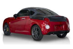 そのK-OPENの実現に向けて取り組んでいる証となるのが、K-OPENランニングプロトだ。一見すると現行コペン・セロにしか見えないが、じつは商用車用のスラントエンジンとハイゼット用のリアデフやドライブシャフトが用いられ、FR方式に仕立てられている。低重心化や重量配分を研究するための、いわば先行開発車両だが、こうしたクルマがショー会場に置かれるのは異例だ。