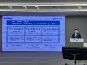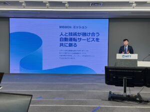 山下航太社長は、「移動の担い手が減っている。NTTは移動を支える。人々が日常的に活用していた移動手段が使えない。自動運転は欠かせない」と決意を語った。