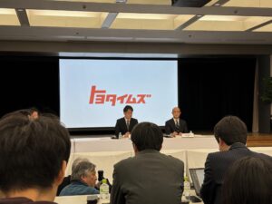 MCを務めた富川氏はトヨタの社員でありながらジャーナリストを名乗っているようだ。これでジャーナリストに一番求められる客観性を担保できるのだろうかという疑問は、記者の間で一貫して語られている。