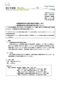 2025年7月の「日米間の枠組み合意」に盛り込まれた「日本国内で販売のため追加試験なしで受入れ」に沿った対応だ。2月16日付けで公布施行された。