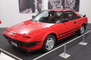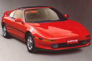 初代MR2は83年東京モーターショーに予告編が出展された後、84年に国産初のミッドシップ乗用車として発売されて同年の日本カー・オブ・ザ・イヤーを獲得した。1.5Lと1.6Lの各NAエンジンが用意され、後期型では1.6Lスーパーチャージャーもラインナップ。直線基調のボディをまとい、Tバールーフも用意された。デビュー時の価格帯は141万2000円〜198万3000円。